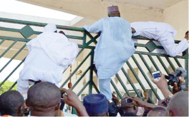 With all access to the complex blocked, some of the lawmakers resorted to scaling the fence, while others forced the pedestrian gate open before Tambuwal gained access to the complex.
